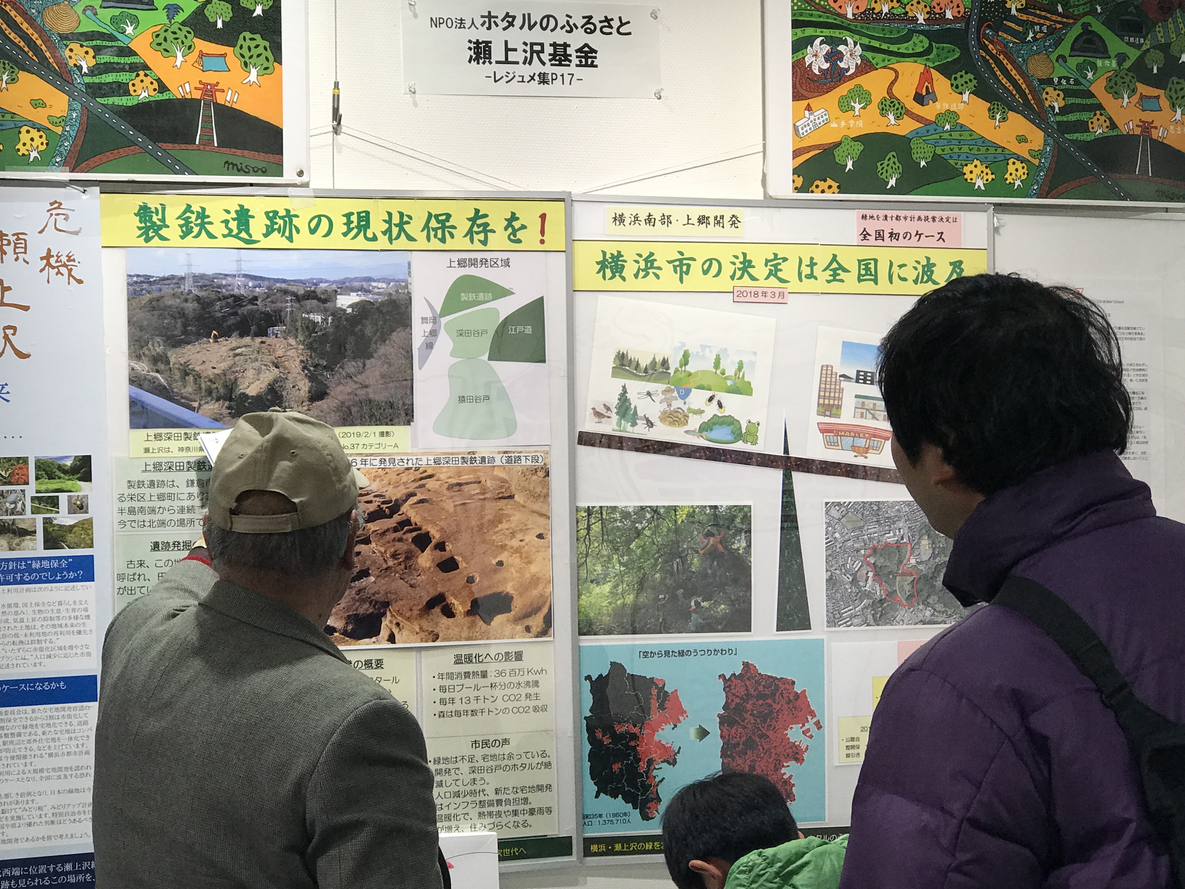 当基金はパネル6枚を展示し、瀬上沢の全面保全と製鉄遺跡の現状保存を訴えかけました。