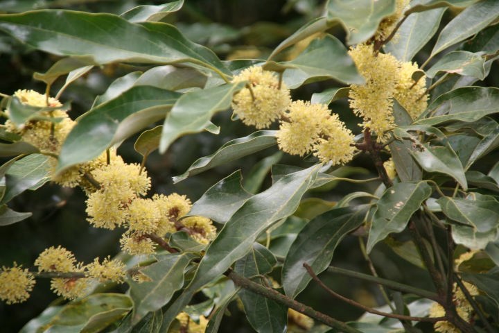 クスノキ科の常緑高木。木全体に精油を含み 芳香がある。雌雄異株。雌株は晩秋に黄褐色の小花を多数つけ、翌年の秋に赤の球果が熟する。