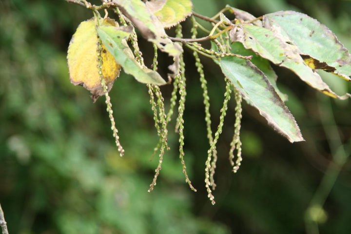 春、葉に先立って多数の黄色花を穂状に 垂らす。果実は黒色染料となる。