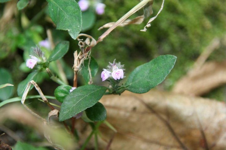 キツネノマゴ科の一年草。秋、先端に淡紫紅 色の小唇形花の密生した穂をつける。